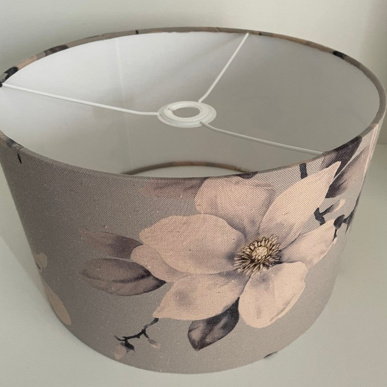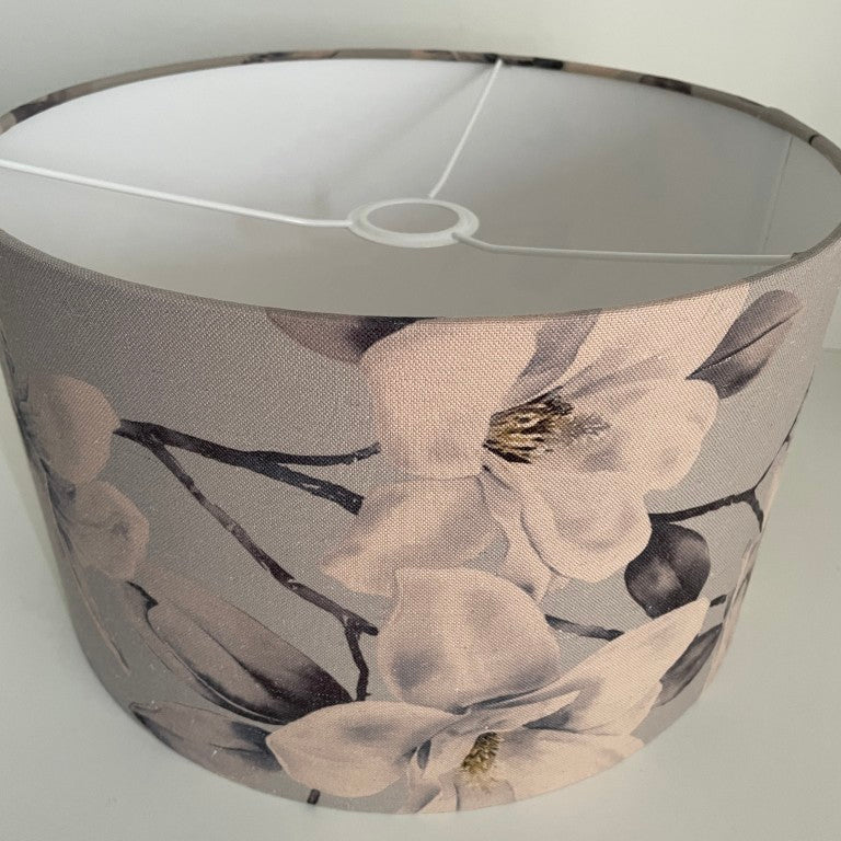 Ready-made Medium Barrel lampshade | Silver Blue Magnolias