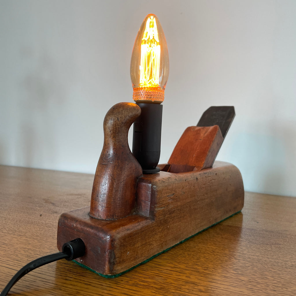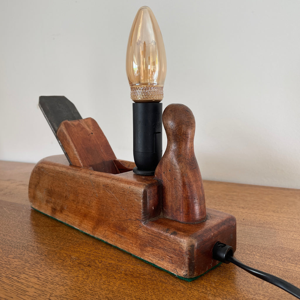 Every Workshop Legacy Lamp begins with a vintage carpenter’s plane — a relic from the days when every cut, curve, and joint was made by hand.